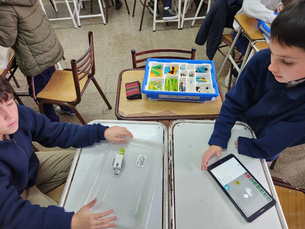 Fomentamos el trabajo colaborativo reuniendo a los alumnos en pequeños grupos. Cada integrante desarrolla un rol dentro del equipo: constructor, encargado de materiales y responsable de grupo. Sin embargo, es fundamental el diálogo, la cooperacion, el respeto mutuo y la interacción entre ellos, para llegar al objetivo: la construcción y programación del proyecto.